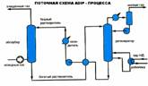 В схеме аминов и очистки газа с высоким содержанием кислых компонентов подача раствора в абсорбер осуществляется двумя потоками, но разной степени регенерации. Частично регенерированный раствор из десорбера подается в среднюю секцию абсорбера. Глубокой регенерации подвергается только часть раствора, которая подается на верх абсорбера для обеспечения тонкой очистки газа. Такая схема позволяет по сравнению с обычной схемой до 10-15% снизить расход пара на регенерацию раствора.