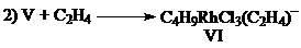 Образовавшийся карбанион (III) является сильным основанием и жестким нуклеофилом и практически не способен присоединяться далее к пропилену, но зато способен оторвать относительно кислый Н+ из СН3-группы С3Н6 с образованием продукта реакции и исходного катализатора