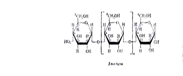 Различна и химическая структура амилозы и амилопектина. Молекулы первой, как правило, строго линейны. В них остатки a-D-глюкопиранозы связаны друг с другом исключительно a-1,4-глюкозидными связями, т.е. кислородные мостики возникают за счёт гликозидного гидроксила 1-го атома одной молекулы a-D-глюкопиранозы и спиртового гидроксила при 4-м атоме другой: