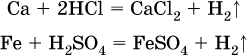 С НCl (разб.) и H2SO4 (разб.) реагируют почти все металлы, стоящие левее