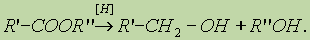3. Реакция восстановления. Восстановление сложных эфиров водородом приводит к образованию двух спиртов: