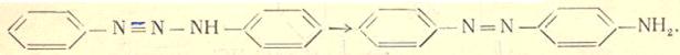 При этом группа С6Н5—N2 мигрирует от азотного атома к n-углеродному атому бензольного кольца. Из диазоаминотолуола