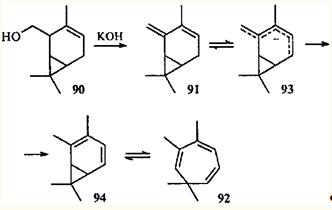 ), а 2,3,7,7-тетраметилциклогепта-1,3,5-триен (92